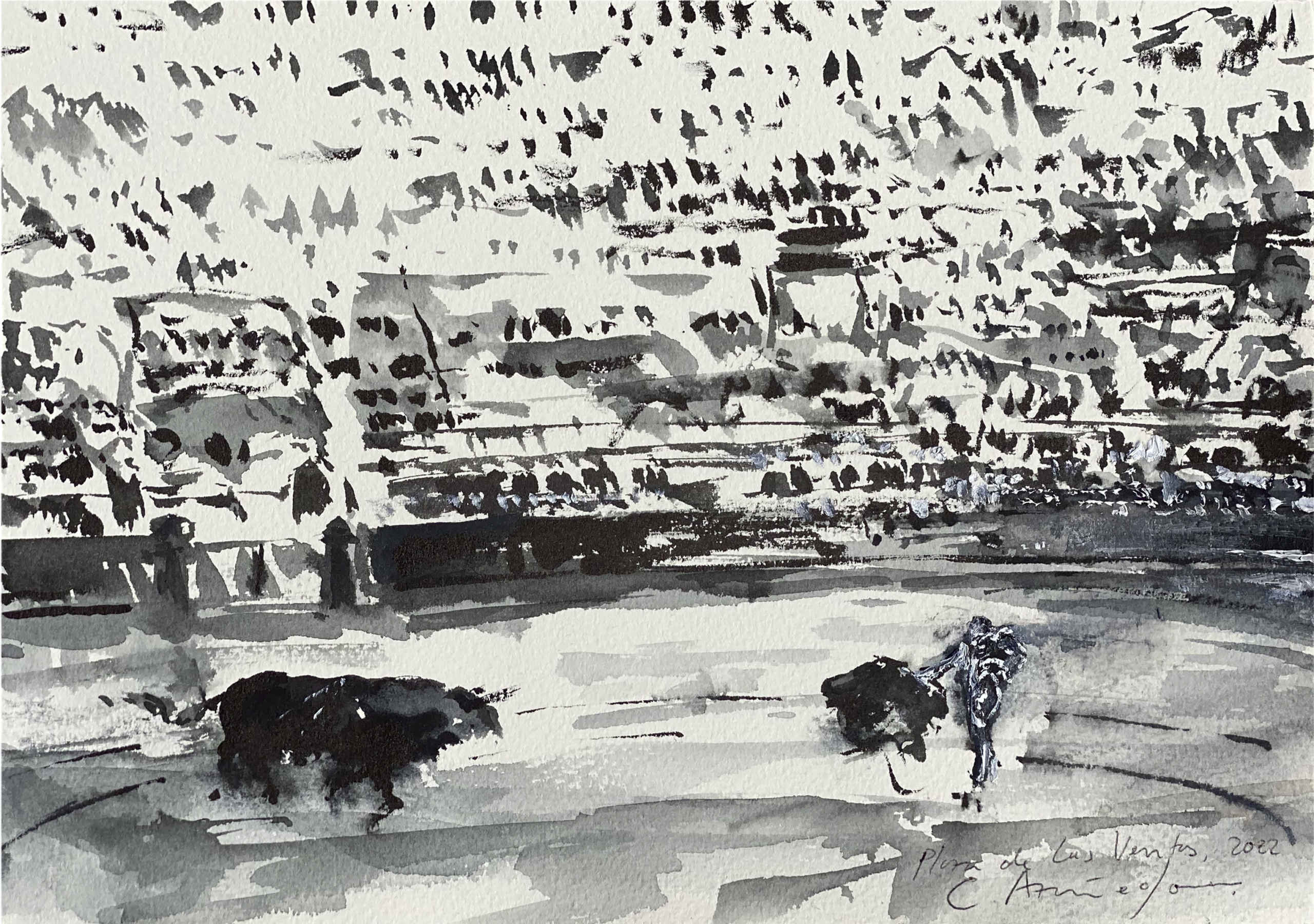 Ink and watercolor on paper